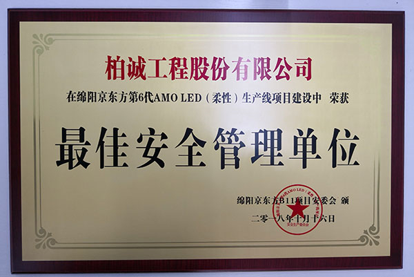 近期,我公司綿陽京東方B11項目部在業(yè)主、PM、監(jiān)理、總包組織的安全表彰大會中榮獲“安全管理單位”獎項;同時朱晨光獲得“優(yōu)秀項目經(jīng)理”稱號、馬金龍獲得“安全管理先進個人”稱號、劉躍獲得“安全管理先進個人”稱號。